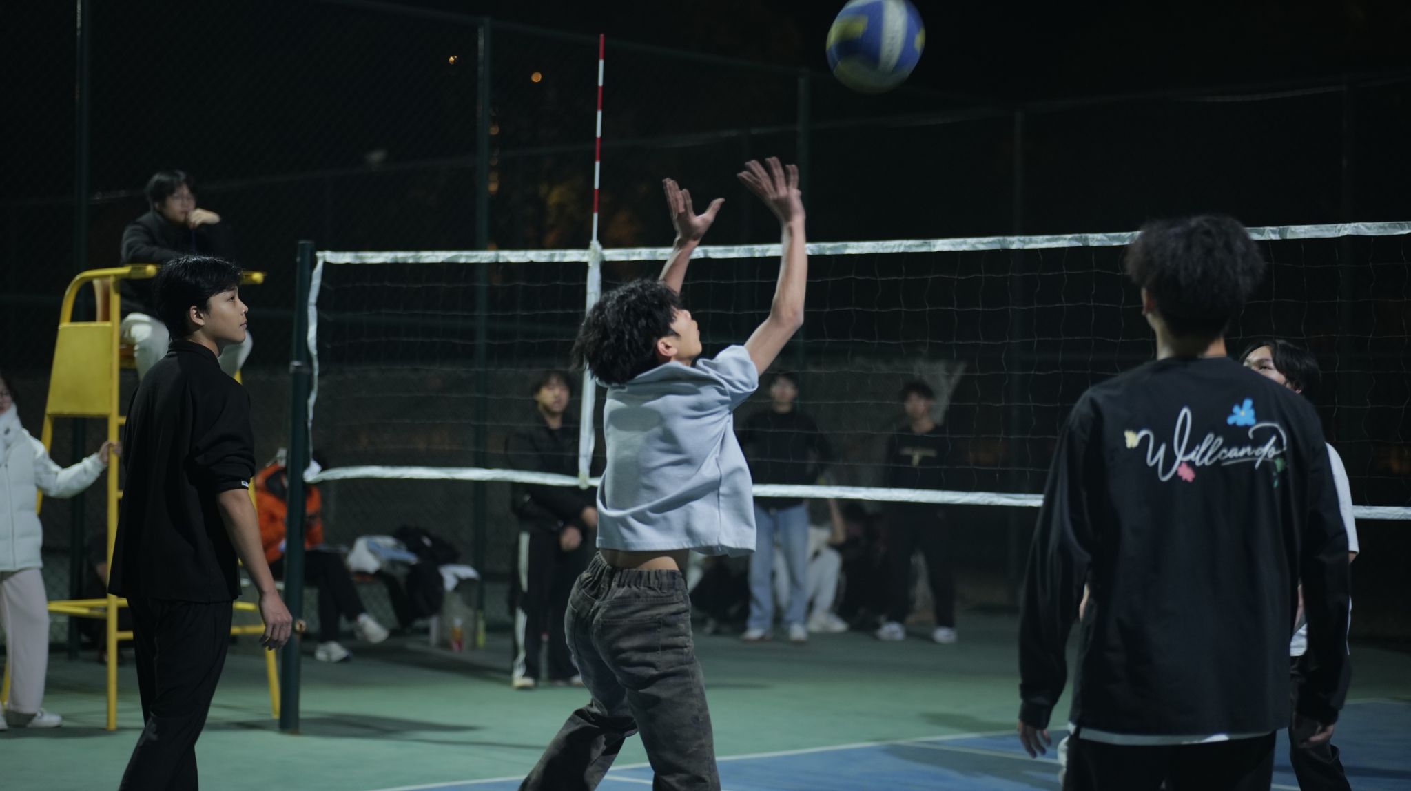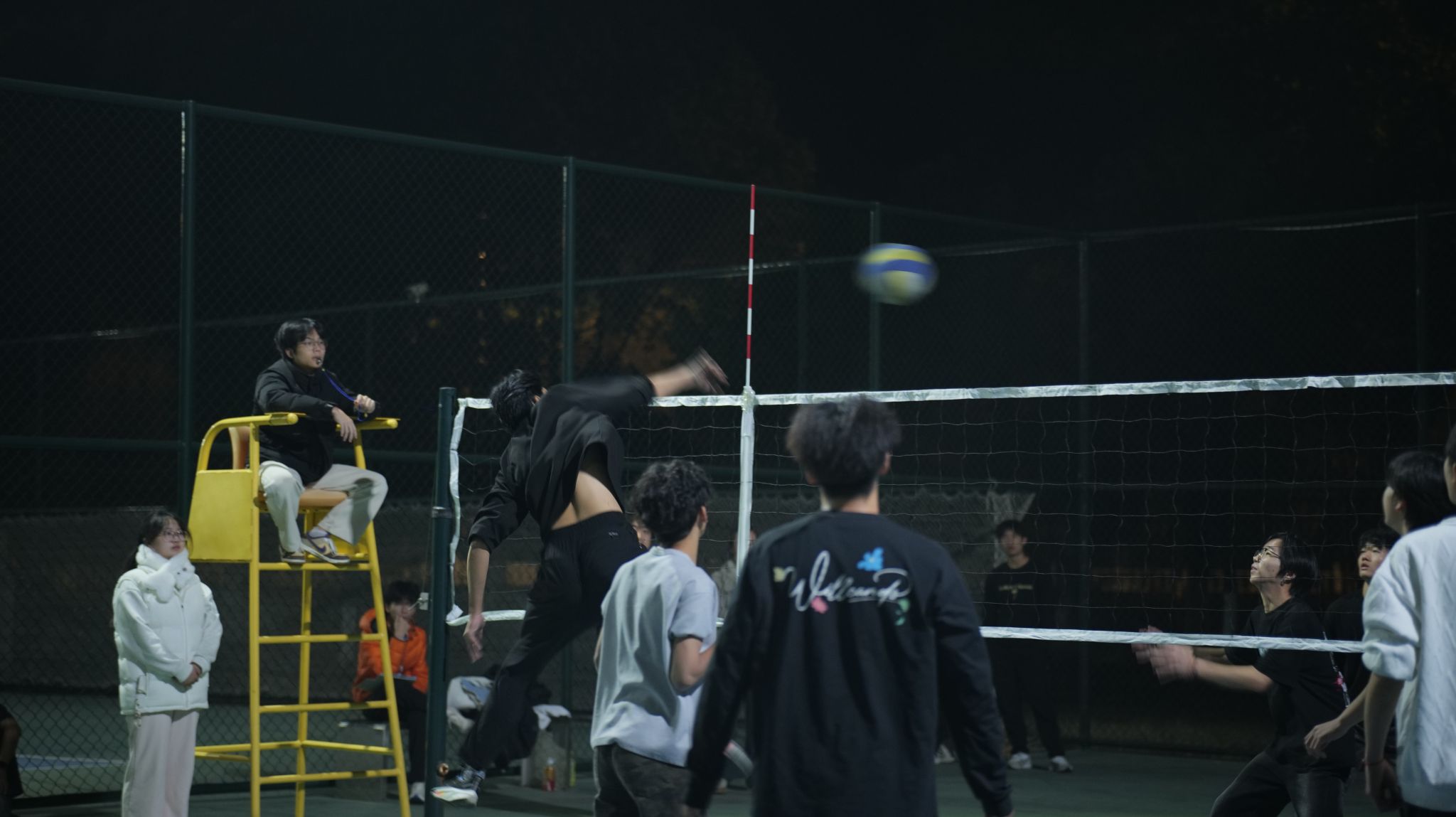 比赛伊始,赛场便热闹非凡,新手与老手的比拼各有亮点、相映成趣。经验丰富的队员们动作娴熟,发球精准、垫球稳健、扣杀有力,跑位配合默契;初次参赛的同学虽略显青涩,传球偶有失误,站位也在不断调整,但始终全情投入、奋力拼搏。他们在实战中快速熟悉规则、摸索技巧,逐渐掌握发球与拦网要领;熟练的选手则在比拼中不断优化战术、打磨配合,力求每一次进攻都精准高效。场边观赛的同学们热情高涨,助威声与欢呼声此起彼伏,持续点燃现场氛围。